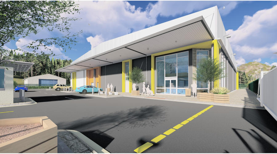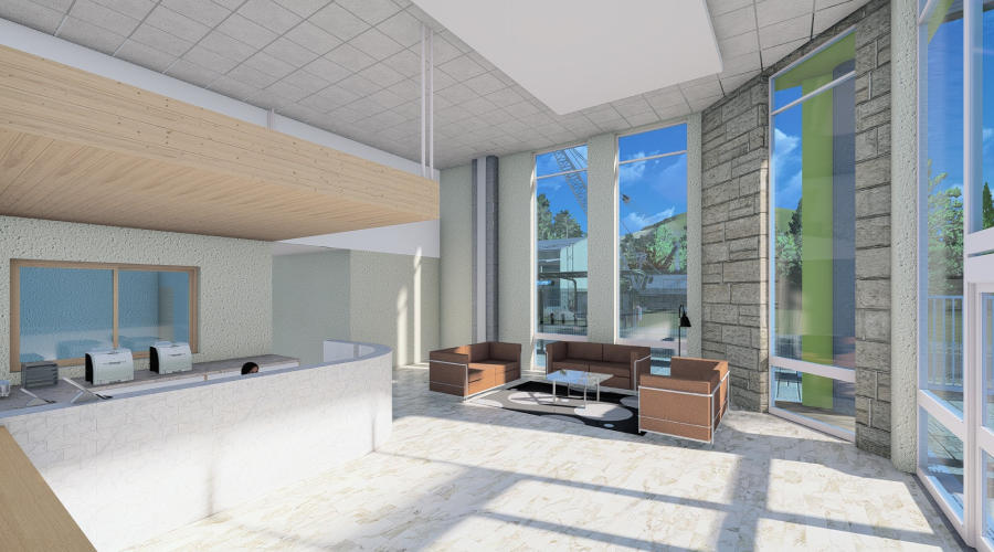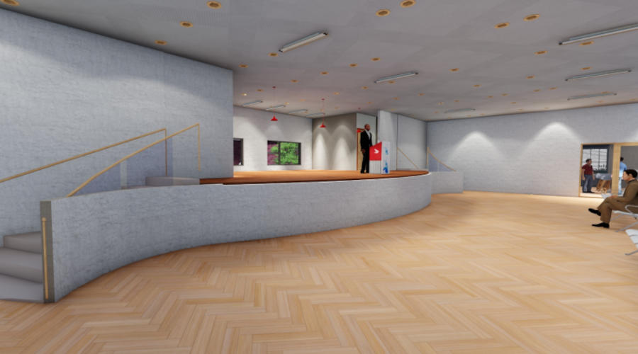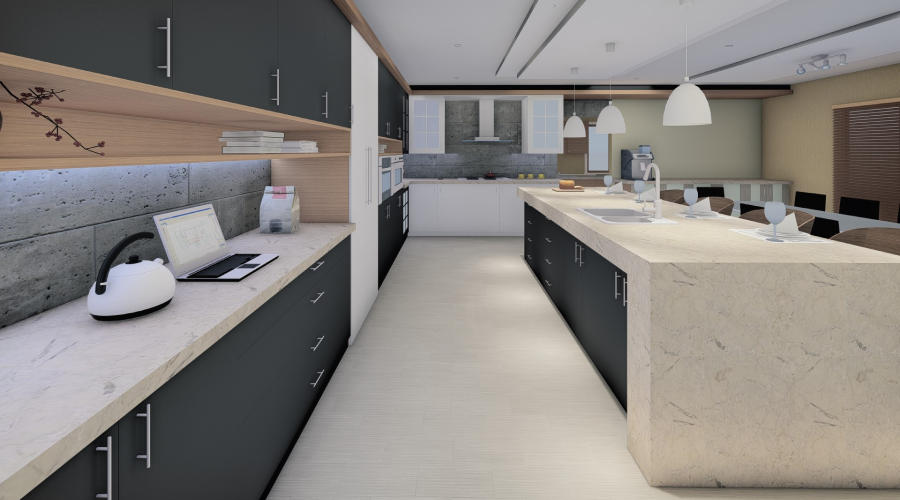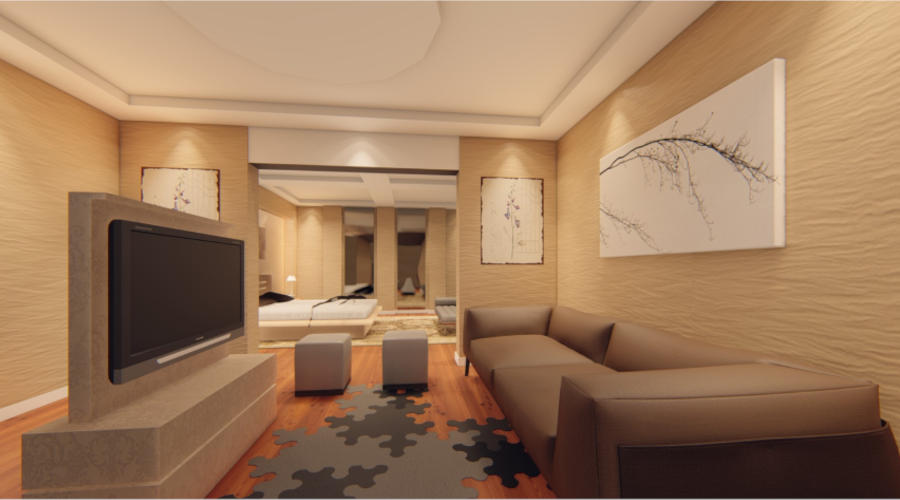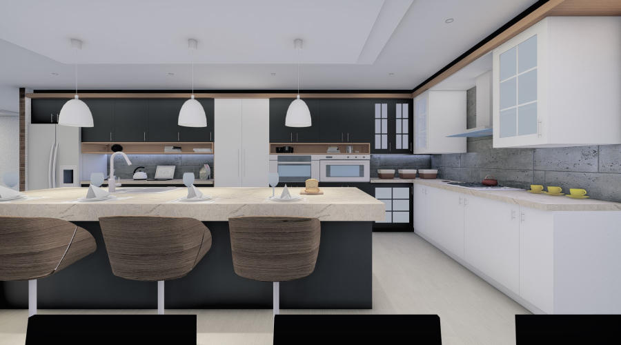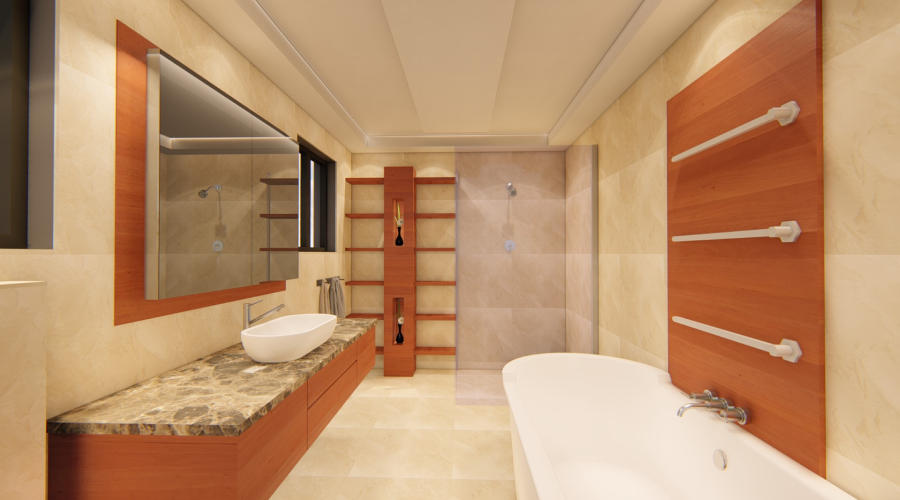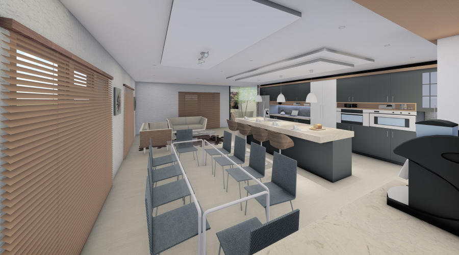 bathroom and open plan lounge, kitchen and dining room. Linearcurve