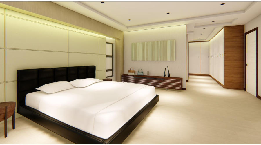 houses 5 bedrooms, 5 en-suite bathrooms, large pajama lounge, open